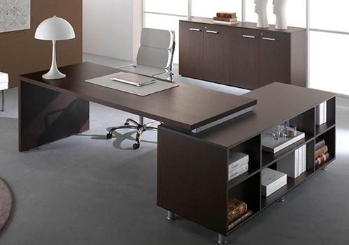 Suministro e instalación de escritorio ejecutivo PG014 de dimensiones 1.60m X 1.60m. Elección de color y diseño disponible.